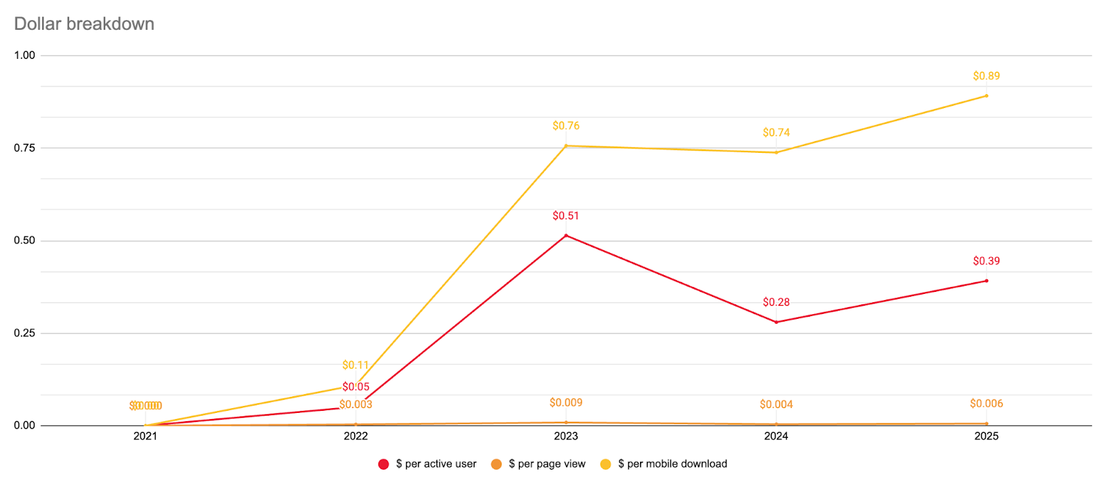 In 2026, we budgeted for $13.3MM in spend and ambitiously forecast $8MM in ARR and $9MM in donations, at a minimum. Our sales and impact teams are new this year, and we just turned on our marketing engine in November, a new function of the business. Up until this point we have solely relied on product-led growth, so we expect positive changes in the forecast in H2 2026.